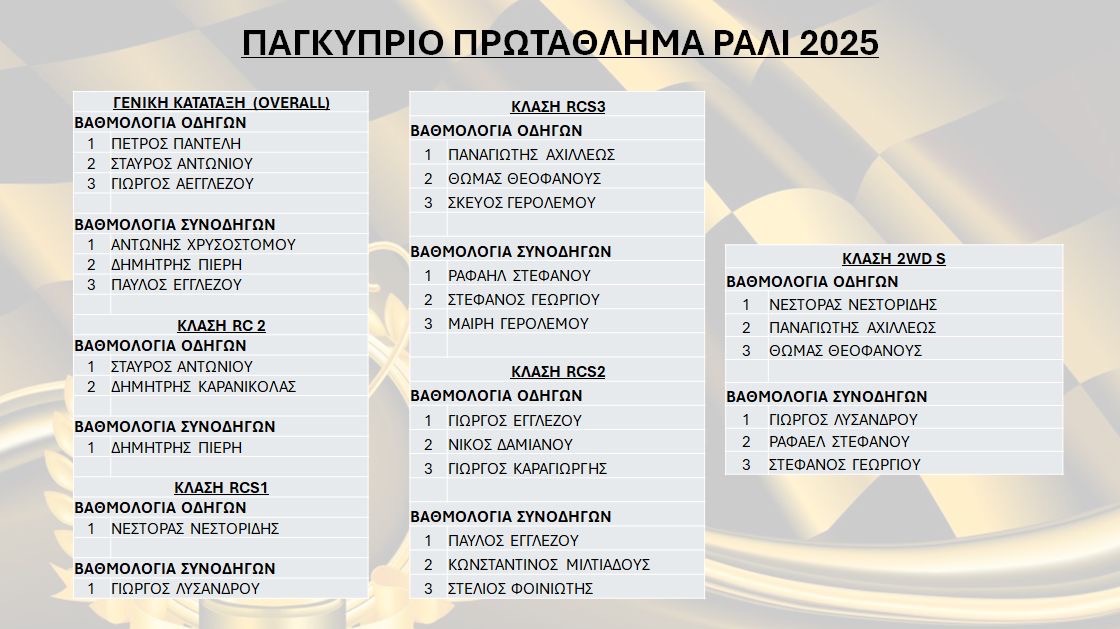 Με απόλυτη επιτυχία και μέσα σε κλίμα γιορτής πραγματοποιήθηκε την Τετάρτη 15 Απριλίου στο Πολιτιστικό Κέντρο «Μελίνα Μερκούρη» στη Λευκωσία η επίσημη Τελετή Απονομής Βραβεύσεων της Κυπριακής Ομοσπονδίας Αυτοκινήτου για τα Παγκύπρια Πρωταθλήματα του 2025. Η εκδήλωση αποτέλεσε το ιδανικό κλείσιμο μιας έντονης και άκρως ανταγωνιστικής χρονιάς, με τους πρωταγωνιστές των κυπριακών διαδρομών να παίρνουν το χειροκρότημα που τους αξίζει σε μια βραδιά αφιερωμένη στο πάθος για την ταχύτητα και την οδηγική αριστεία.