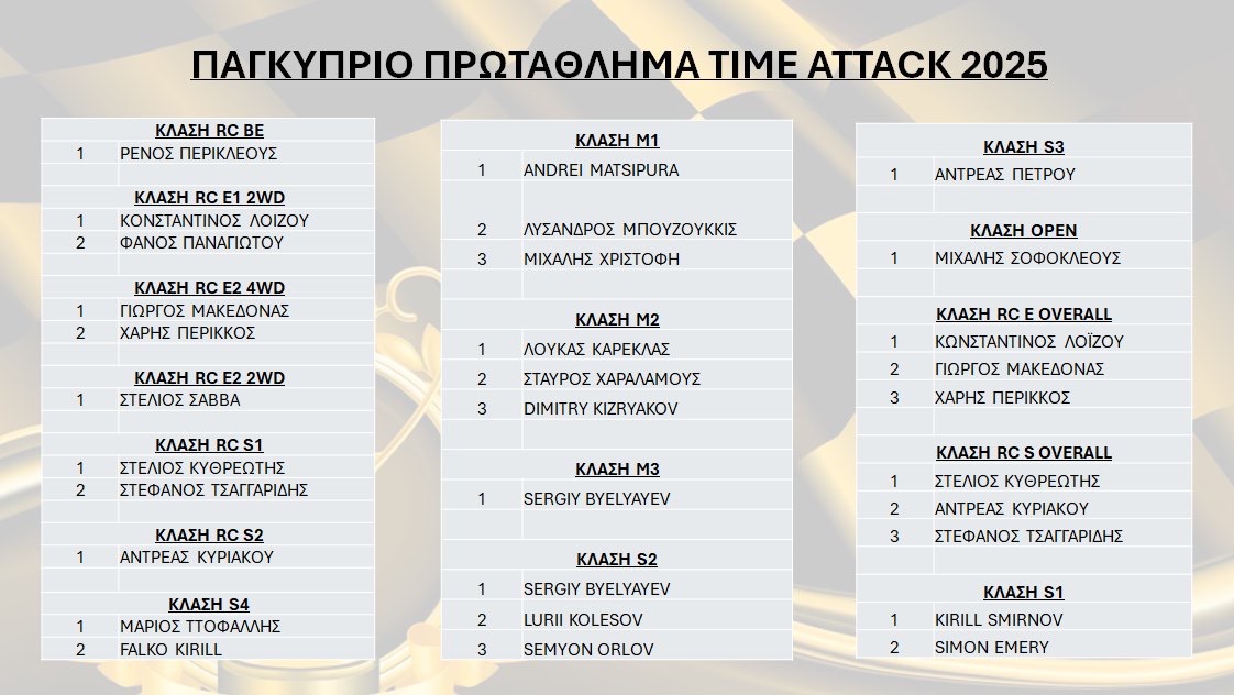 Κατά τη διάρκεια της βραδιάς τιμήθηκαν οι κορυφαίοι οδηγοί και συνοδηγοί που κυριάρχησαν στις ειδικές διαδρομές του Ράλλυ και στις πίστες του Drift, ενώ ιδιαίτερη αναφορά έγινε στους πρωταγωνιστές των Αναβάσεων και του Time Attack, κατηγορίες που χάρισαν μοναδικές συγκινήσεις και έντονο συναγωνισμό τη χρονιά που πέρασε.