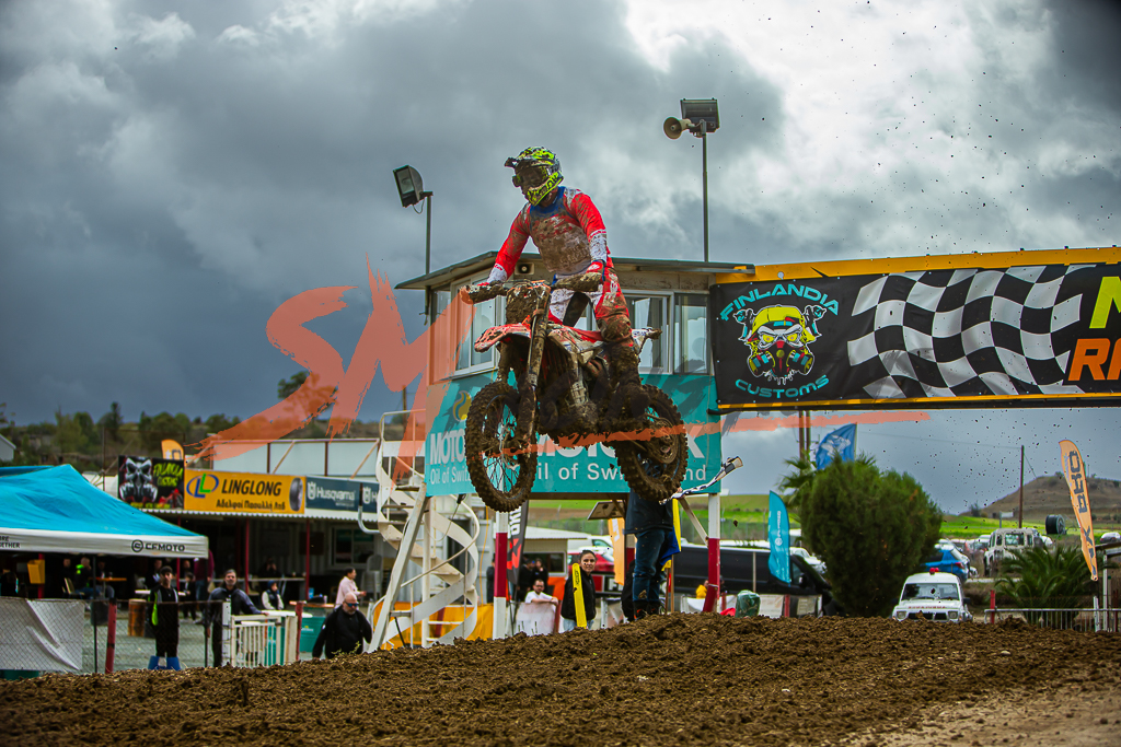 Στην κατηγορία MX1, ο Χριστός Τσαγγαράς ήταν ο απόλυτος κυρίαρχος. Με δύο εξαιρετικές εκκινήσεις πήρε από νωρίς το προβάδισμα και στα δύο σκέλη και εκμεταλλευόμενος την εντυπωσιακή του ταχύτητα στο λασπωμένο τερέν, δεν άφησε κανένα περιθώριο αμφισβήτησης.