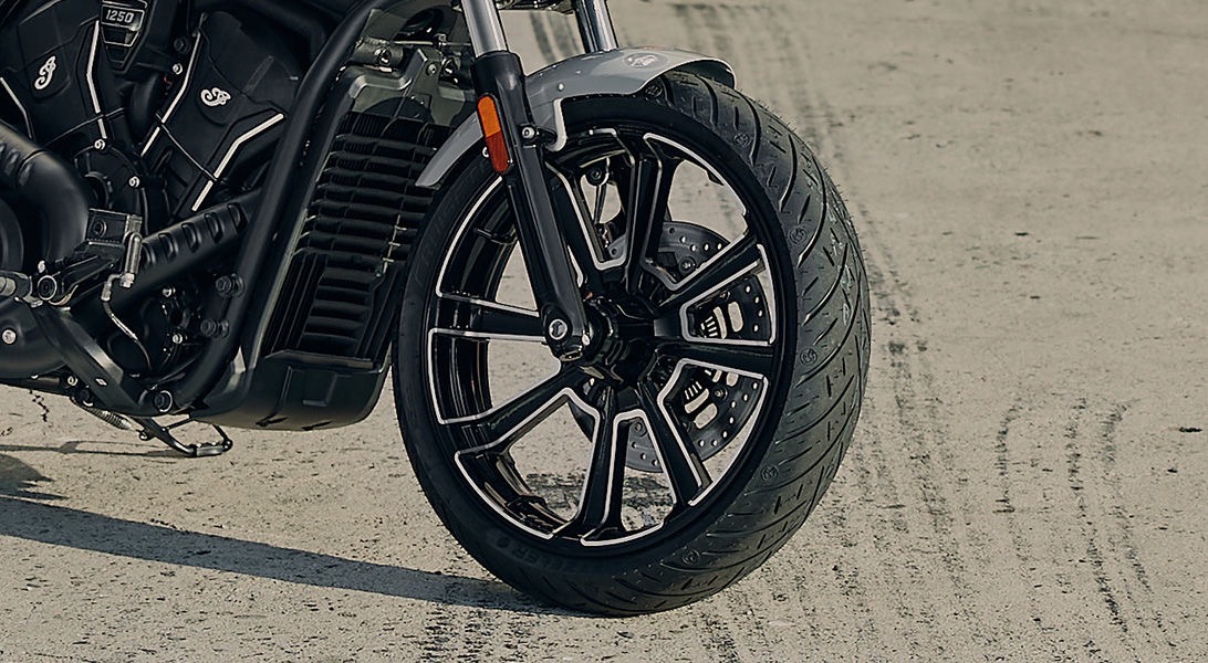 Η γεωμετρία της μοτοσικλέτας σχεδιάστηκε ώστε να συνδυάζει σταθερότητα υψηλών ταχυτήτων και ευελιξία. Με γωνία κάστερ 29°, trail 12.2 cm και μεταξόνιο 156.2 cm, η Sport Scout προσφέρει σίγουρο πάτημα χωρίς να χάνει τη ζωηρή της υπόσταση στις αλλαγές πορείας. Το χαμηλωμένο ύψος σέλας στα 65.3 cm (68.1 cm χωρίς φορτίο) επιτρέπει στον αναβάτη να νιώθει άμεση επαφή με το έδαφος, ενώ η απόσταση από το έδαφος στα 11.2 cm διατηρεί το χαμηλό κέντρο βάρους που χαρακτηρίζει τα performance cruisers της Indian. Με βάρος λειτουργίας 248 kg, η μοτοσικλέτα προσφέρει σταθερότητα χωρίς υπερβολές, με ισορροπία που γίνεται εμφανής από την πρώτη στιγμή.