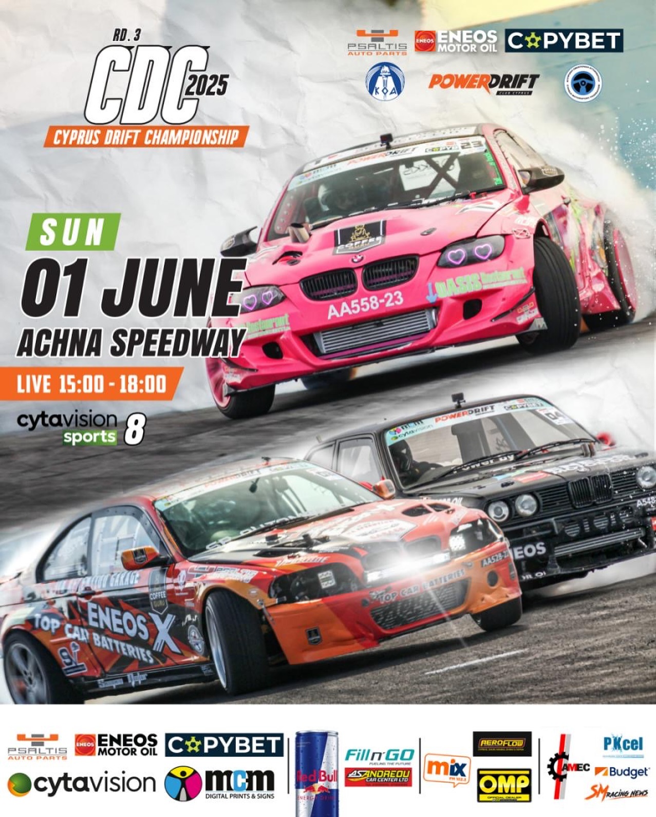 Με τέτοια ονόματα και τόσο υψηλό επίπεδο ανταγωνισμού, δεν υπάρχει αμφιβολία ότι ο τρίτος γύρος θα αποτελέσει καθοριστικό σημείο στην πορεία του φετινού πρωταθλήματος. Το κοινό αναμένεται να γεμίσει την πίστα Achna Speedway, με την αγωνιστική δράση να κορυφώνεται και τις μάχες να είναι οριακές, όλα δείχνουν πως το πρωτάθλημα του 2025 θα κριθεί ξανά στις λεπτομέρειες. Ο τρίτος γύρος στην Achna Speedway αναμένεται να είναι καθοριστικός.