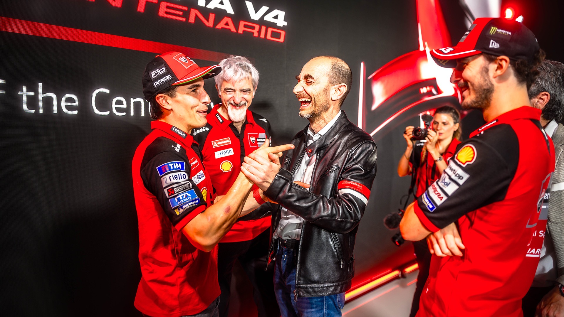 Η αποκάλυψη πραγματοποιήθηκε σε ένα αποκλειστικό event στα Turn 11 car condos της πίστας, με περίπου 100 καλεσμένους – από Ducatisti και media μέχρι συνεργάτες της εταιρείας. Την παρουσίαση ανέλαβε ο CEO της Ducati, Claudio Domenicali, μαζί με τους Francesco Milicia και Jason Chinnock, ενώ το highlight της βραδιάς ήταν η παρουσία των Marc Márquez και Francesco Bagnaia σε ένα ειδικό Q&A.