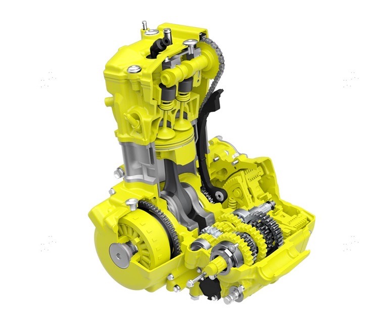 Ο κινητήρας είναι ένας πλήρως ανασχεδιασμένος μονοκύλινδρος 398 κ.εκ., τετράχρονος, τετραβάλβιδος DOHC, με έμφαση στη γραμμική απόδοση και τη χρηστικότητα. Για πρώτη φορά σε DR-Z, η Suzuki ενσωματώνει ηλεκτρονικό ψεκασμό και Ride-by-Wire, με σώμα γκαζιού 42 mm και μπεκ 10 οπών, βελτιώνοντας αισθητά την απόκριση, την κατανάλωση και τη συμμόρφωση με τις σύγχρονες προδιαγραφές ρύπων. Οι νέοι εκκεντροφόροι με αυξημένο βύθισμα, οι τιτανιούχες βαλβίδες εισαγωγής και η διπλή ανάφλεξη με δύο μπουζί ιριδίου εξασφαλίζουν γεμάτη ροπή από χαμηλά και πολιτισμένη λειτουργία σε όλο το φάσμα στροφών.